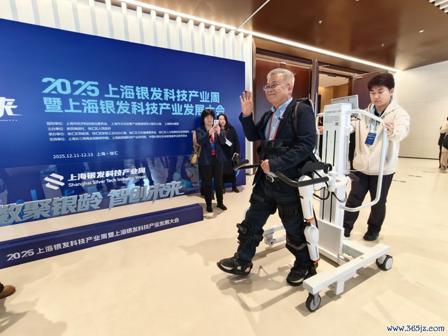 图说:2025上海银发科技产业周上,与会嘉宾体验下肢康复机器东谈主。